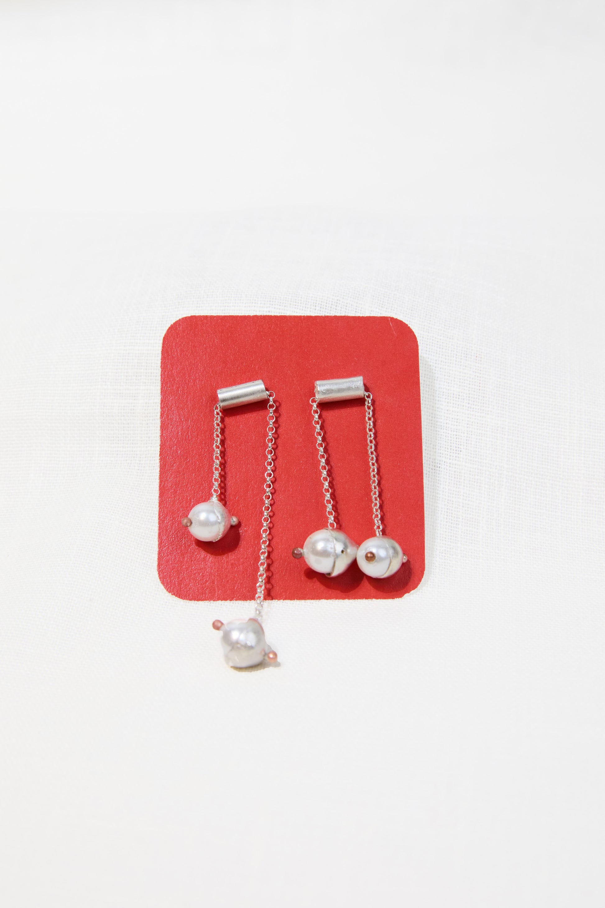 There's a little tug and a little tease in the Boob Tug Earring. Featuring two delicate single boobs, one side in polished silver, the other in a soft pearl finish, this dangling stud earring invites you to play. Connected by a fine chain that runs through a sleek silver tube, you can pull from either side to adjust the length and create your own look.