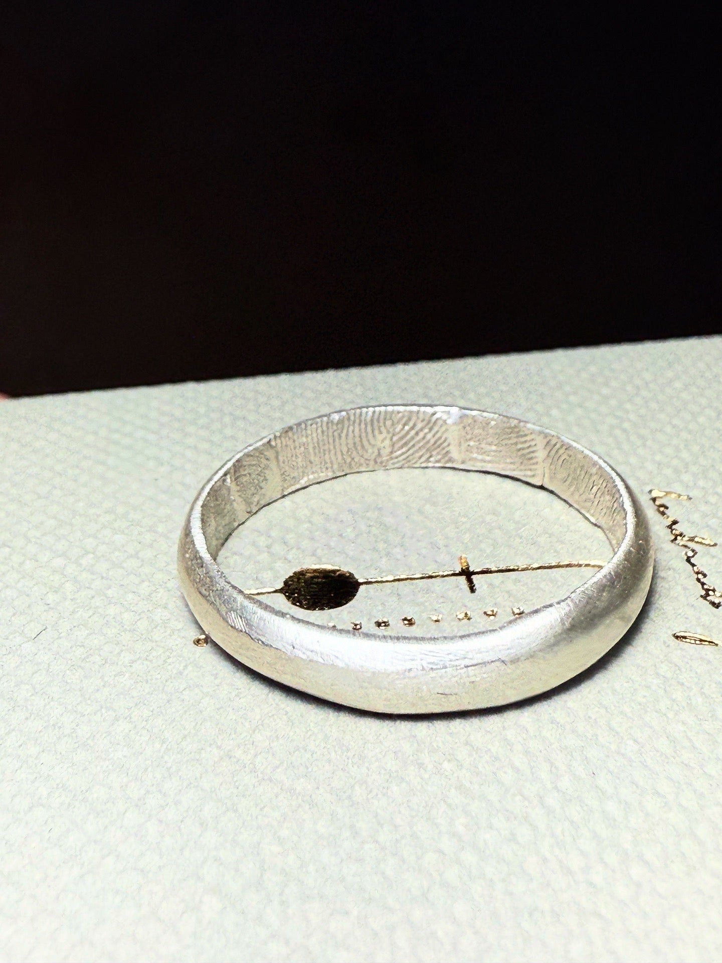 Carry and wear the memory of your loved one with you, always. Engrave your fingerprints or a date, your favorite song or nickname, on your rings or jewelry. Subtle yet deeply meaningful, this engraving captures your precious memories and makes your jewelry more precious, and your story more timeless.