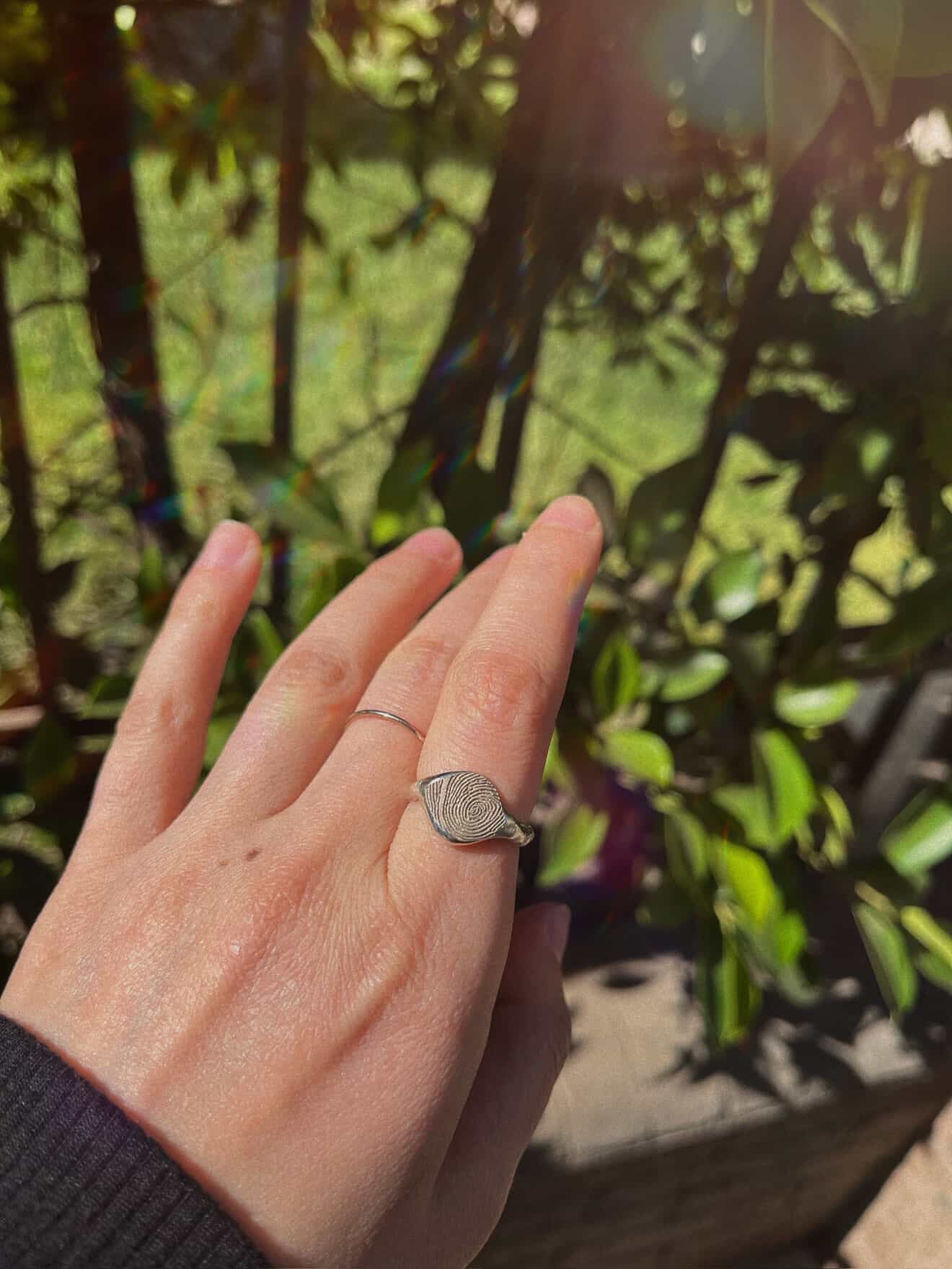 - For a fingerprint engraving, please drop off your rings and get your fingerprints stamped at the FforFarah Studio + Gallery.