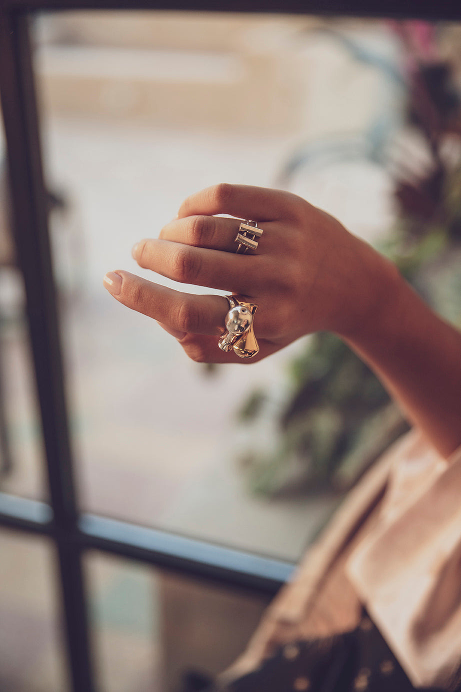 In a continued obsession with movement and simple forms, this ring will surprise you. It is extremely light and minimal yet both tubes are in constant motion on the finger, either sitting closely or far away - depending on how you move them.