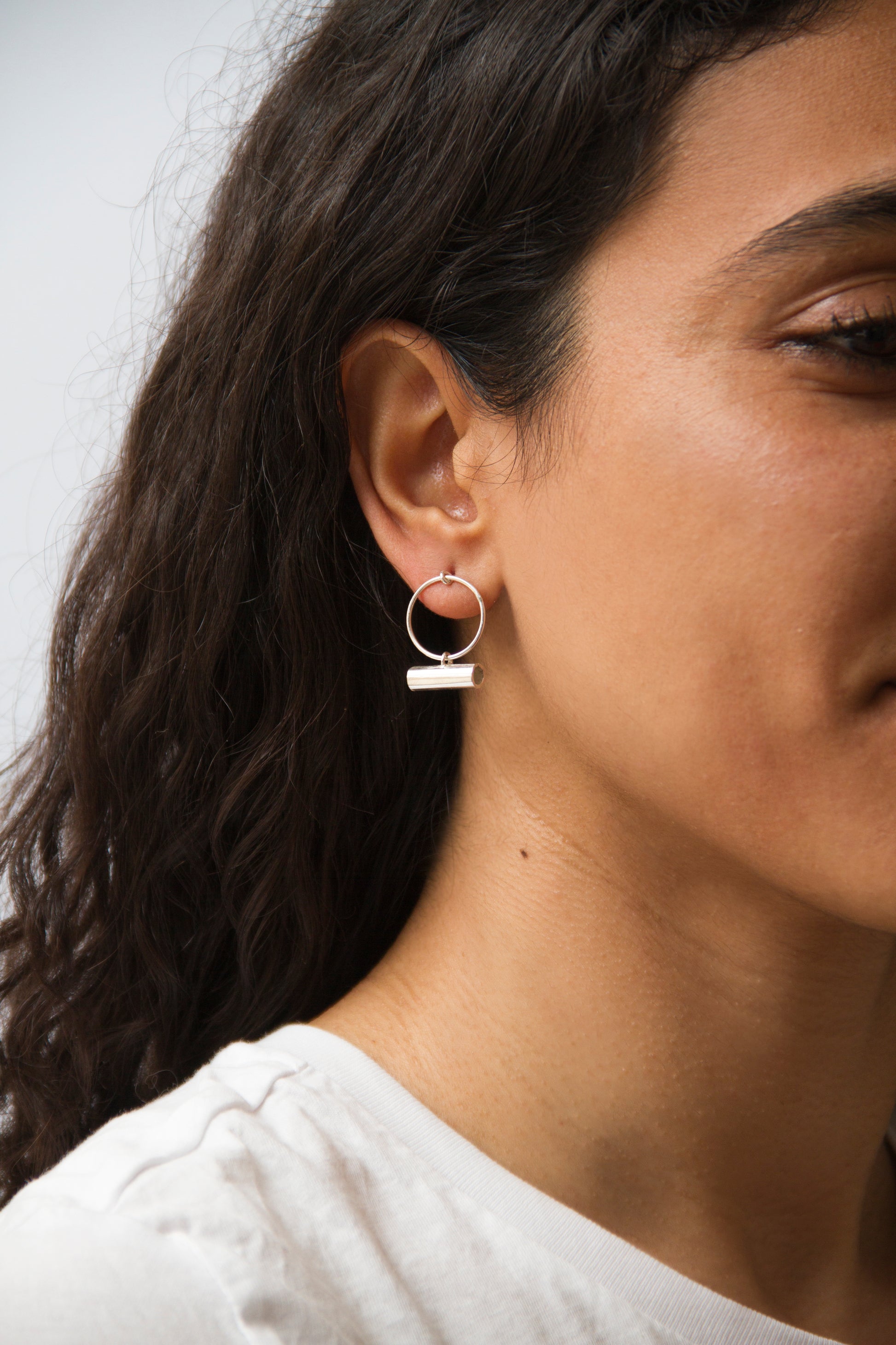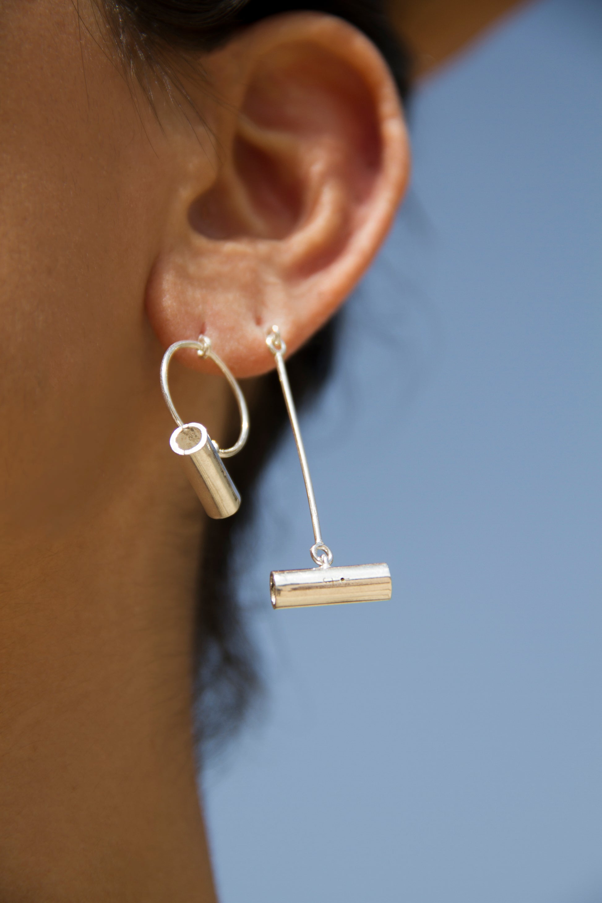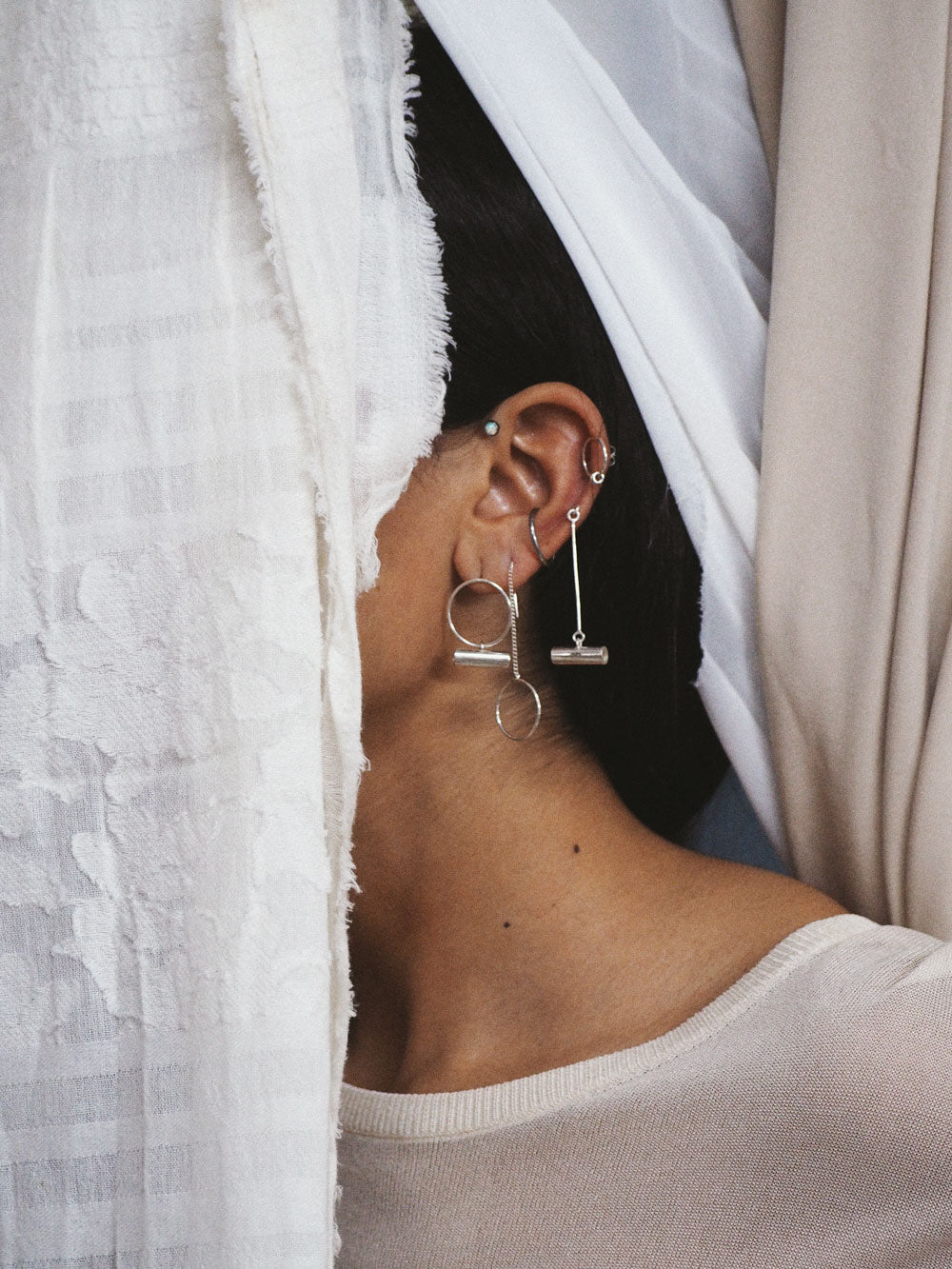 The tube is the extruded solid form of a line, but also of a circle. Here in combination like a pendulum, the perpendicular tube pivots and shakes with the movements of the body.