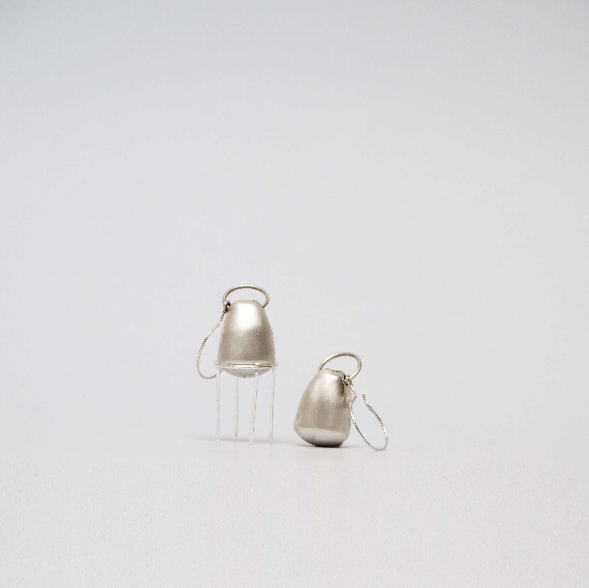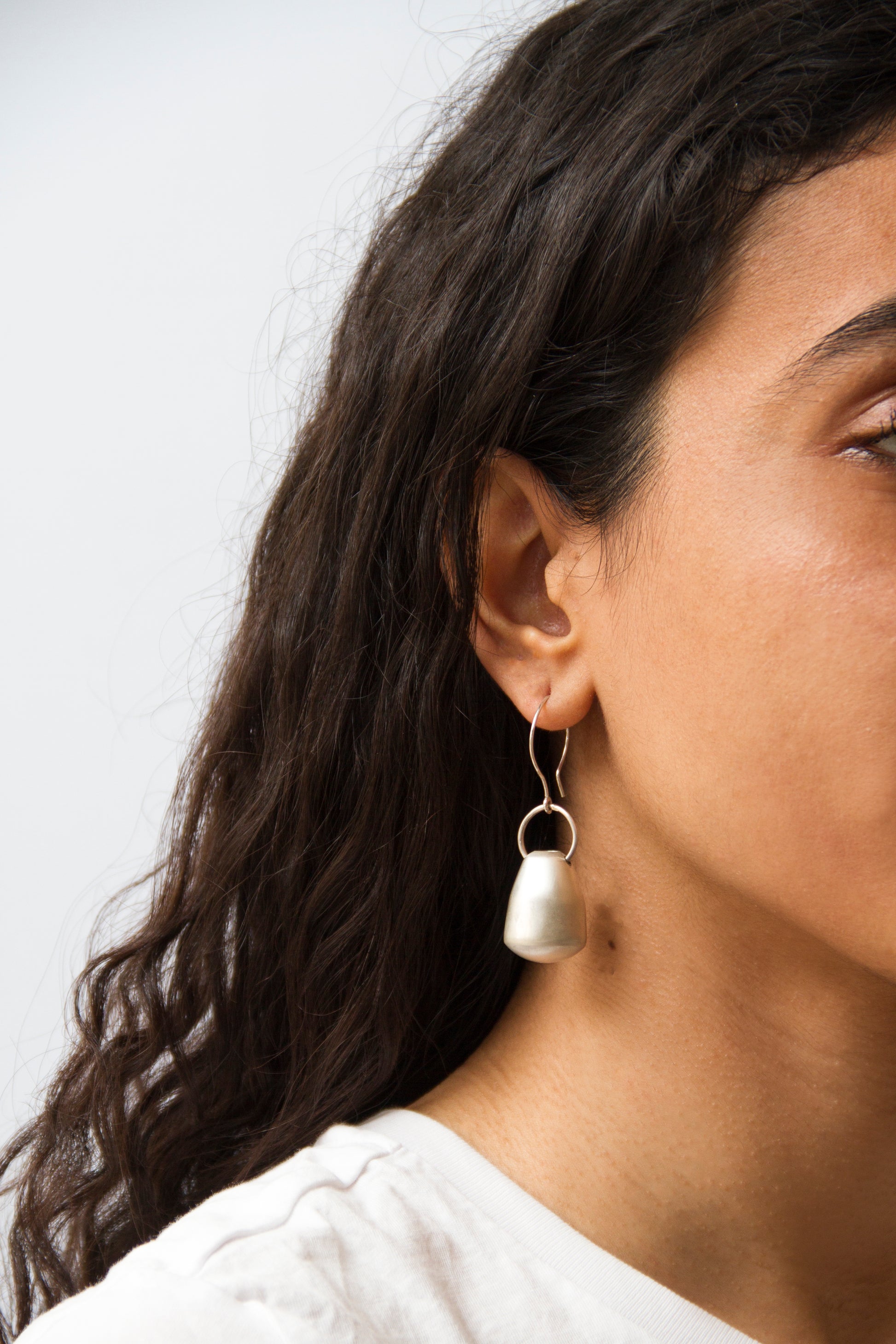 This elongated bubble container swings off the ear, casually showing its open-top hollow nature.