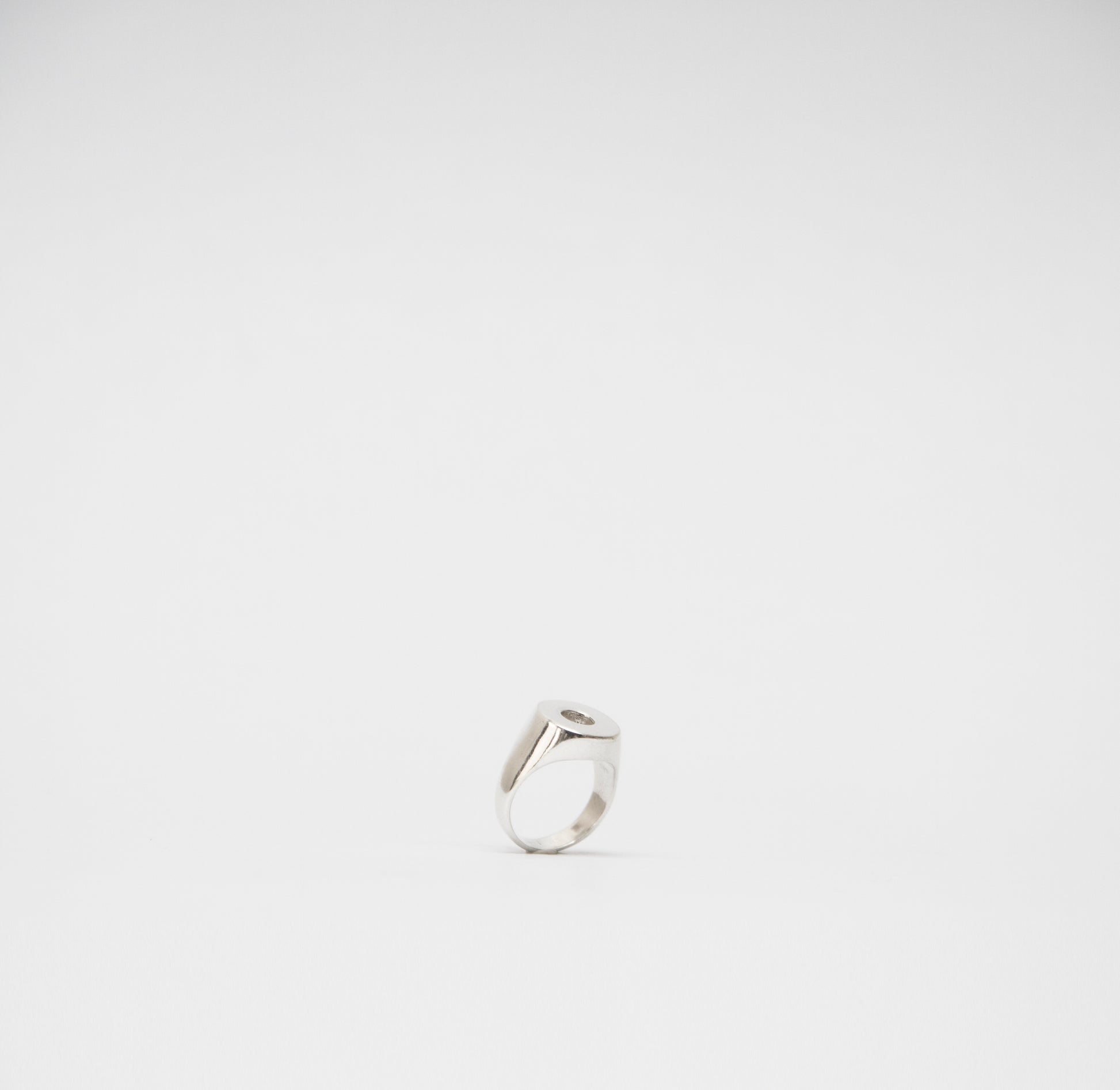 Traditionally used as a family seal with letters carved and engraved to press into a wax stamp, the signet ring was an individual's unique signature. Here with an open circle top, the wearer's skin and identity is revealed, thus no two rings are alike.
