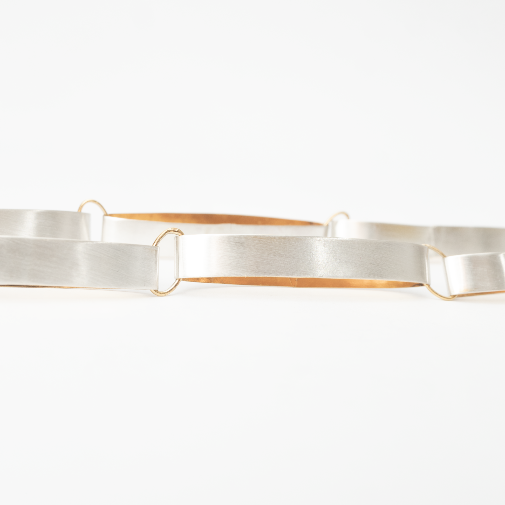 It's all about the light in this minimal and sleek necklace. It moves freely, showcasing its two faces: one in Sterling Silver and one dipped in 18k Gold - sometimes simultaneously, and sometimes not. It reveals its true nature when the time is right.