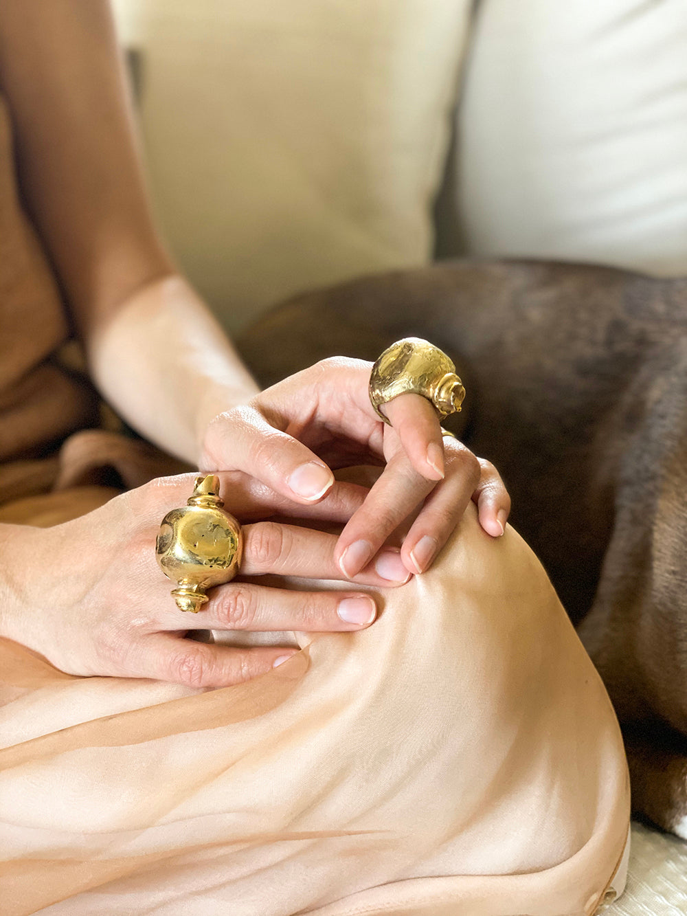 Playing with deconstructed containers and hollow bottle-shapes, this raw-finished ring snugs the finger just right with two openings. The 3/4 opening allows your finger to be a continuation of the ring as if the bottle is coming out of the hand, rather than just sitting on top.