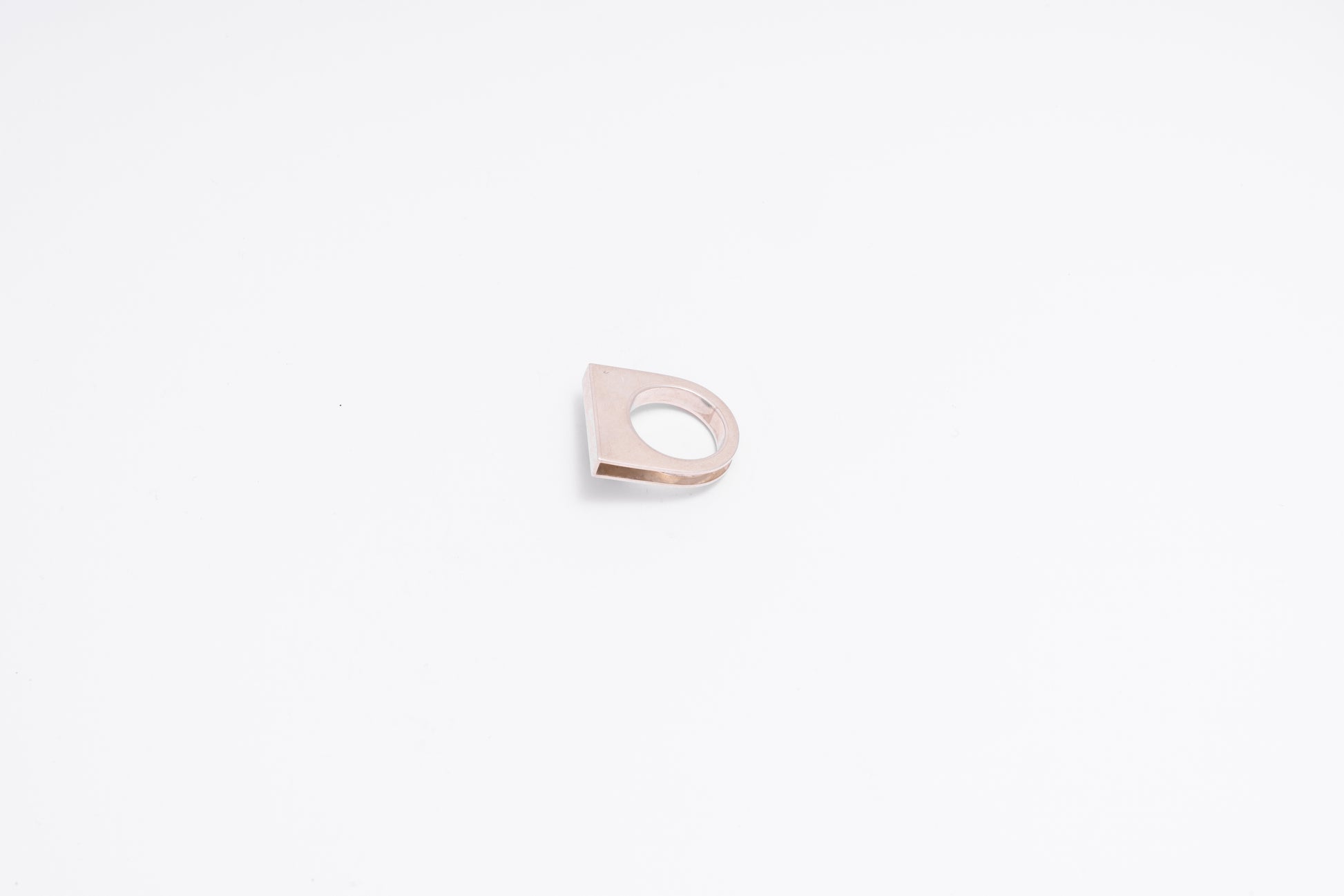 Hollow rings are made with layers of silver sheet soldered together, constructing the final shape. This Square Top Ring has been unfinished, leaving the sides open for the wearer to see and be a part of its architecture and making process, connecting them even more to the maker (Farah).