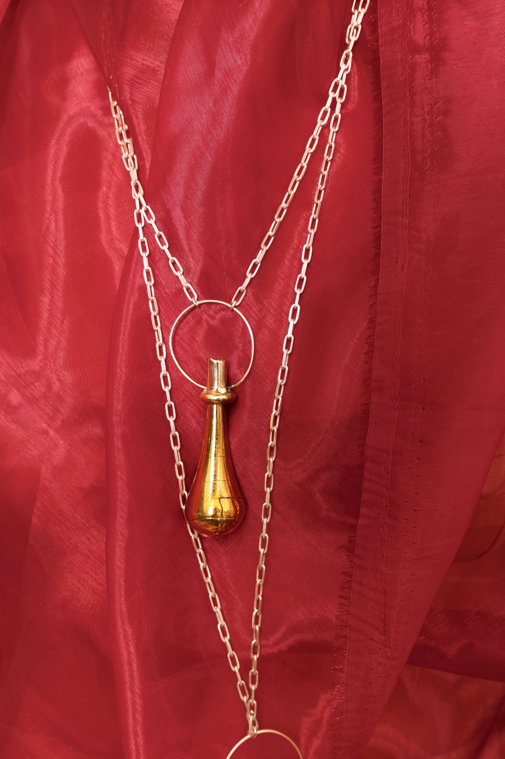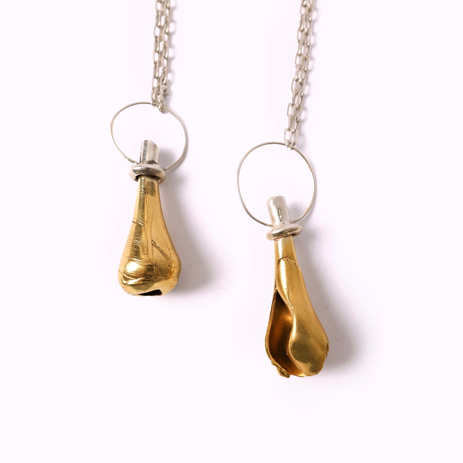In an exploration of form, the Hollow Dome here has been stretched with an elongated neck and a Sterling Silver Halo and head, marrying the two metals together.